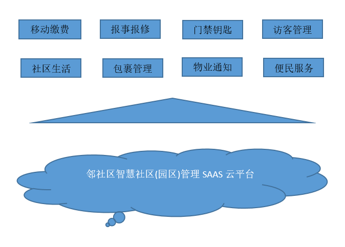 利用公司自主研發(fā)的“鄰社區(qū)”云平臺,住戶可以完成在線自助繳費(fèi)、自助報修、自助發(fā)放訪客通行證等功能,物業(yè)公司可以在線發(fā)布公告、舉辦小區(qū)活動、進(jìn)行物業(yè)服務(wù)滿意度調(diào)查等,并能有針對性地對業(yè)主提供社區(qū)生活服務(wù)?!班徤鐓^(qū)”云平臺還可并入物業(yè)公司遠(yuǎn)程視頻系統(tǒng)、物業(yè)遠(yuǎn)程呼叫中心、智能物業(yè)管理系統(tǒng)、智能安防系統(tǒng)、智能健康報警系統(tǒng)等,從而建設(shè)智慧社區(qū)和家園,使小區(qū)生活更加智能化。